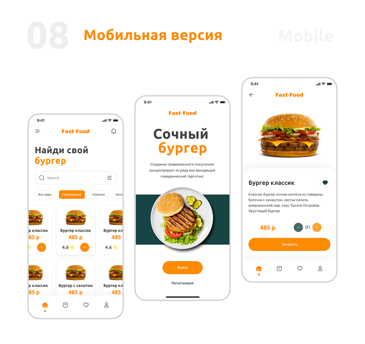 Минималистичный и интуитивно понятный интерфейс, заменяющий официанта, чтобы пользователь мог легко и быстро сделать заказ.